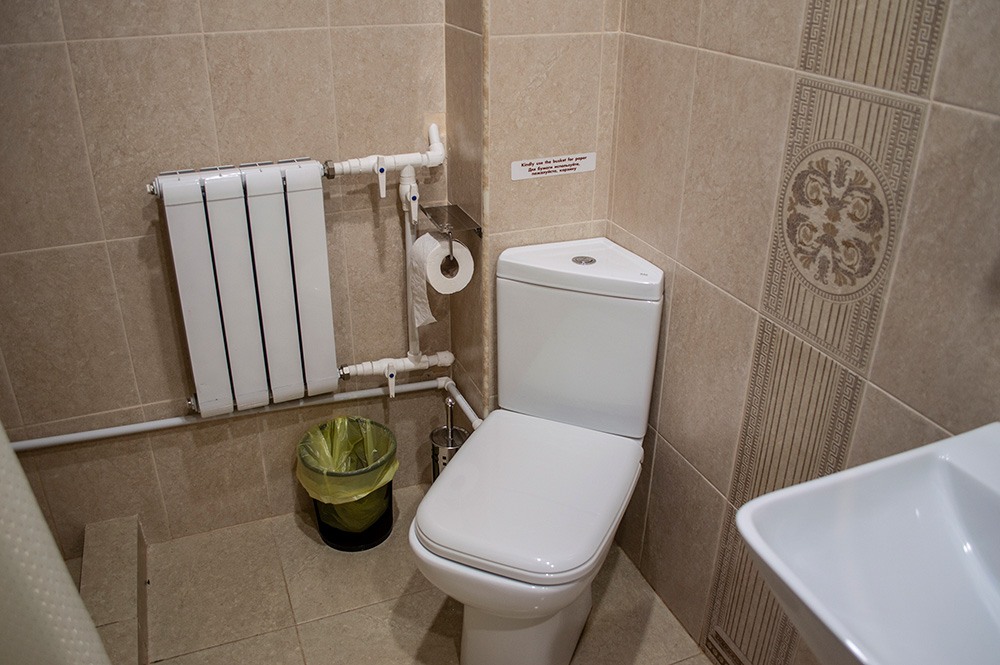 This is a large quadruple room, located on the first floor of Stone Art Guest House. It features two separate single beds (or one king size bed) and one bunk bed, extra bed is available upon request. Equipped with a wardrobe, a table, chairs, Room: Ani may accommodate 5 people.