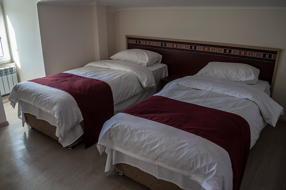 Our Family Room with en-suite bathroom consists of 2 rooms and may accommodate up to 6 people. There are 4 separate beds (or 2 king size beds) in the room, 2 extra beds are available upon request. Located on the second floor of the Stone Art Guest House, the Family Room is equipped with a wardrobe and a small cabinet, a table, chairs.
