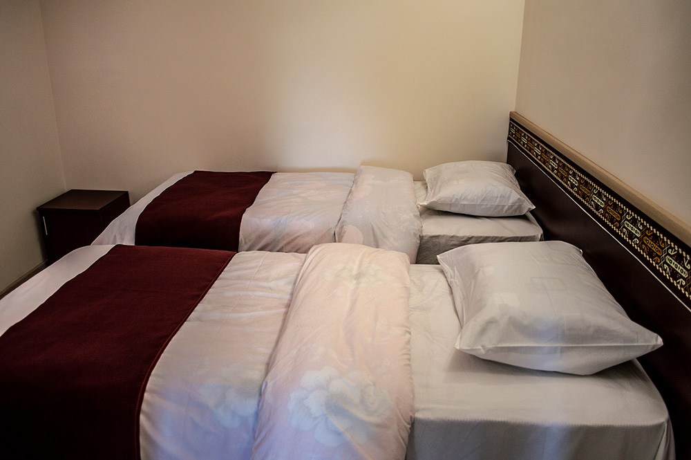 Our Family Room with en-suite bathroom consists of 2 rooms and may accommodate up to 6 people. There are 4 separate beds (or 2 king size beds) in the room, 2 extra beds are available upon request. Located on the second floor of the Stone Art Guest House, the Family Room is equipped with a wardrobe and a small cabinet, a table, chairs.